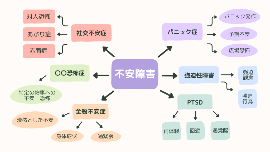 不安は、誰もが日常的に感じる感情ですが、それが長期間にわたって強く現れ、日常生活に支障をきたす場合、それは「不安障害」と呼ばれます。不安障害には主に6つの種類があり、それぞれ特徴的な症状があります。ここでは、代表的な6つの不安障害の種類とその症状を紹介します。