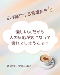 疲労が回復すれば、心にも少しずつ余裕が生まれ、社交への不安も和らぐことがあります。