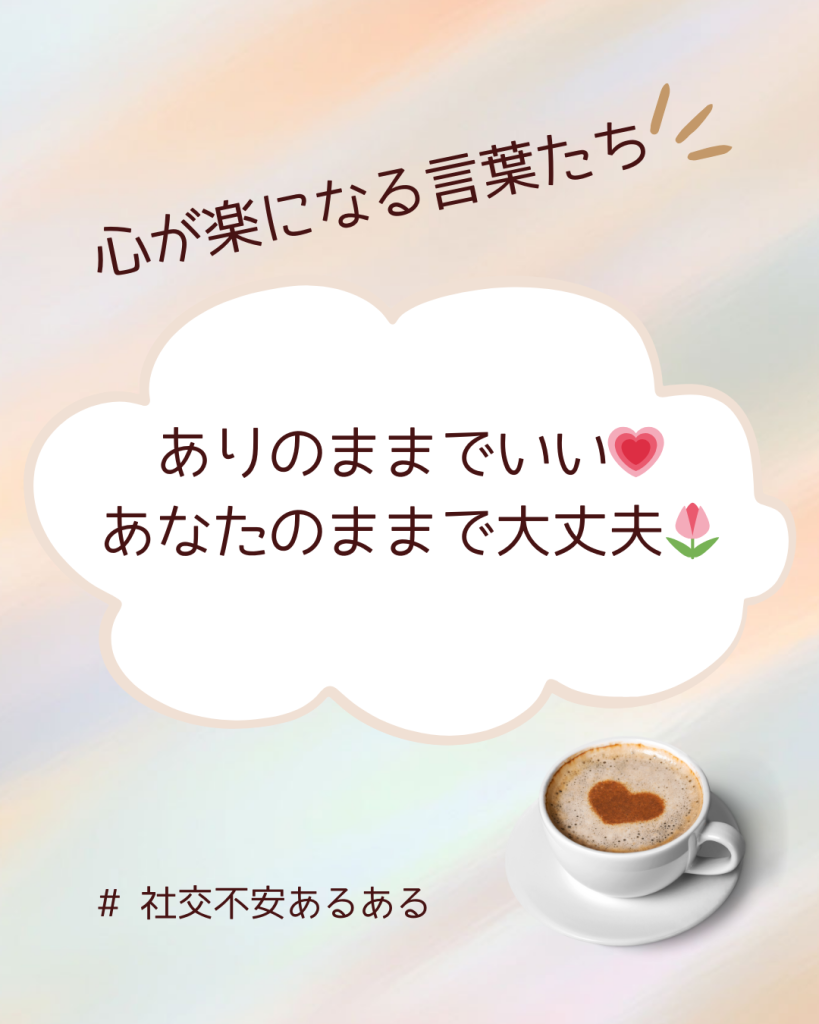 あなたが今感じている「しんどさ」は、決してあなたの努力不足でも、甘えでもありません。それは、あなたが社交不安症という特性を抱えながら、新しい環境で一生懸命頑張ってきた証拠なのです。まずは、その頑張っている自分自身を、優しく労ってあげてくださいね。